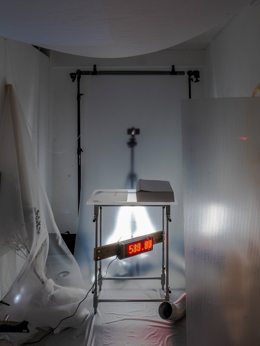 At the center of the work is a self-made, 1,000-page book, each page printed with a human face. The pages are so thin that before turning, the faces overlap and merge; once turned, the image distorts and can no longer be clearly perceived.