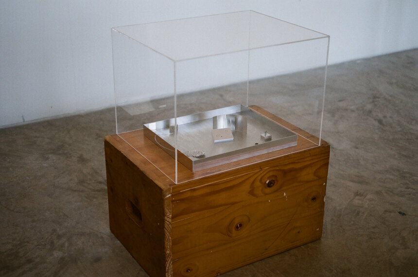 In this work, structure does not appear merely as a physical framework. It emerges as a condition through which perception and consciousness arise. Slight deviations in gravity, support, balance, placement, light, and sound generate moments in which space becomes newly perceptible. Honda’s interest lies in these moments—when something “stands,” and when space itself comes into being.