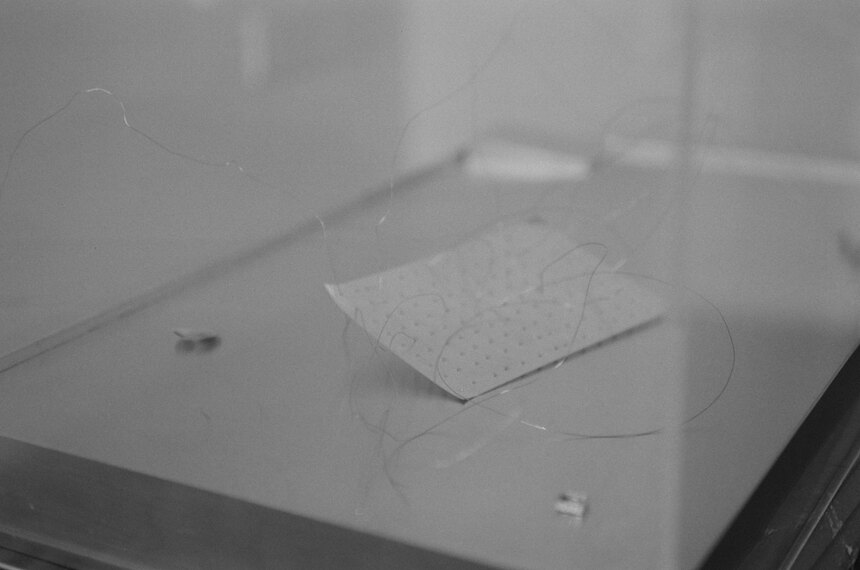 Beginning with the artist’s awareness of metal implanted in her own body, metal is treated as a mediator that subtly connects inside and outside, self and world.